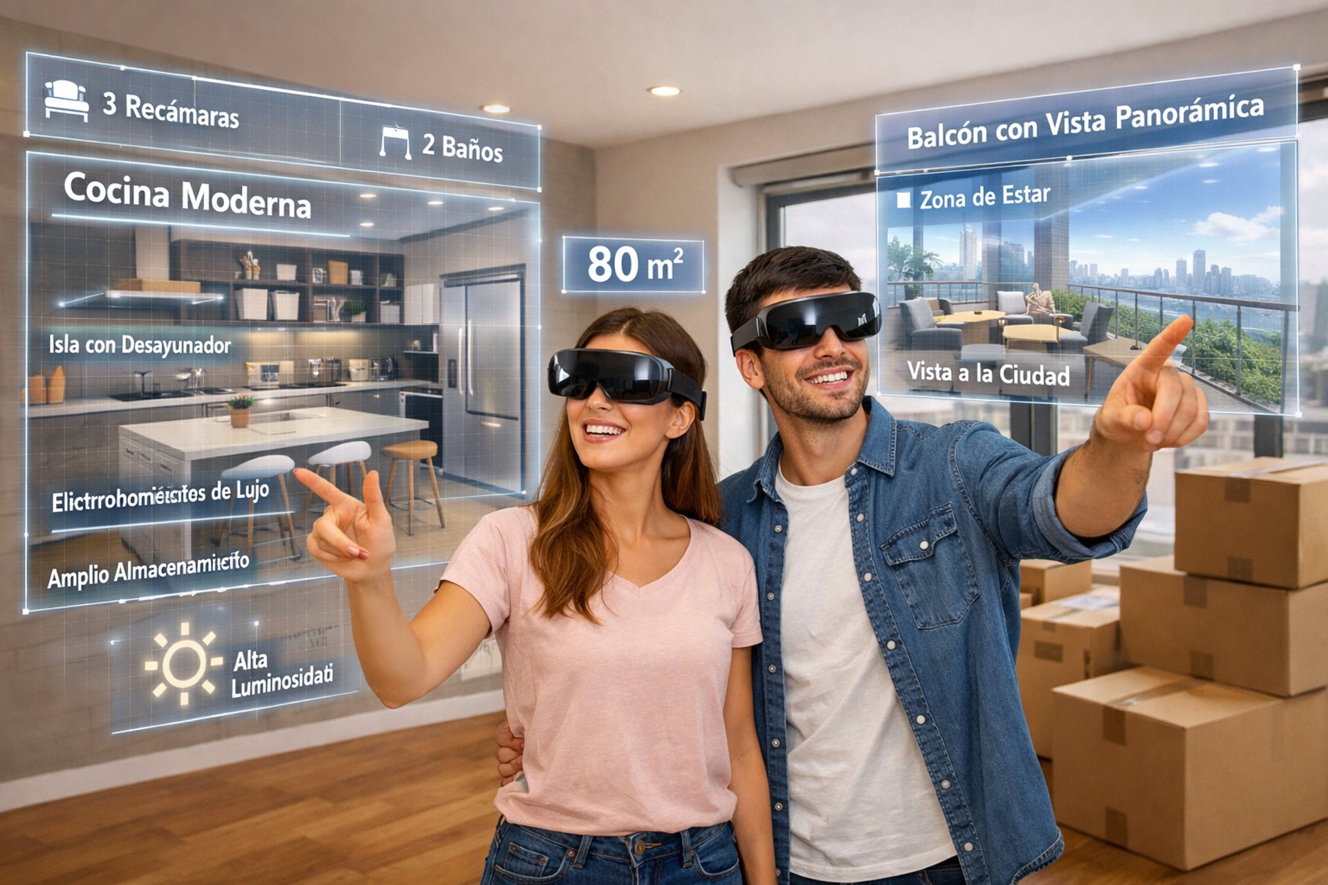 Realidad Aumentada: Mediante dispositivos móviles o gafas de AR, el branding se vuelve inmersivo. Un folleto o una maqueta mínima se convierten en una ventana interactiva al estilo de vida del desarrollo.